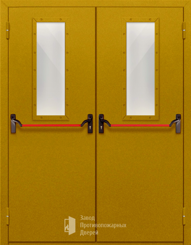 Маркировка Противопожарная Двупольная дверь с прямоугольным стеклом ДПМ-02-EIW30 с антипаникой