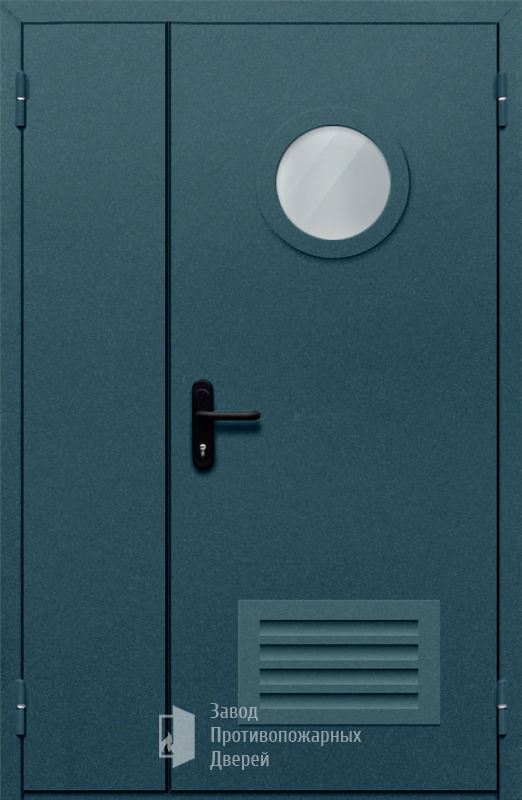 Противопожарная Полуторная дверь с круглым стеклом ДПМ-02-EIW45 с решеткой |